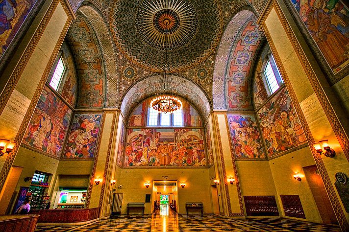The project of the central library belongs to the New York architect Bertram Goodhue. And it was his last work in life (the man died suddenly in 1924). His colleague, Carleton Winslow, took over the job, finishing construction in 1926.
