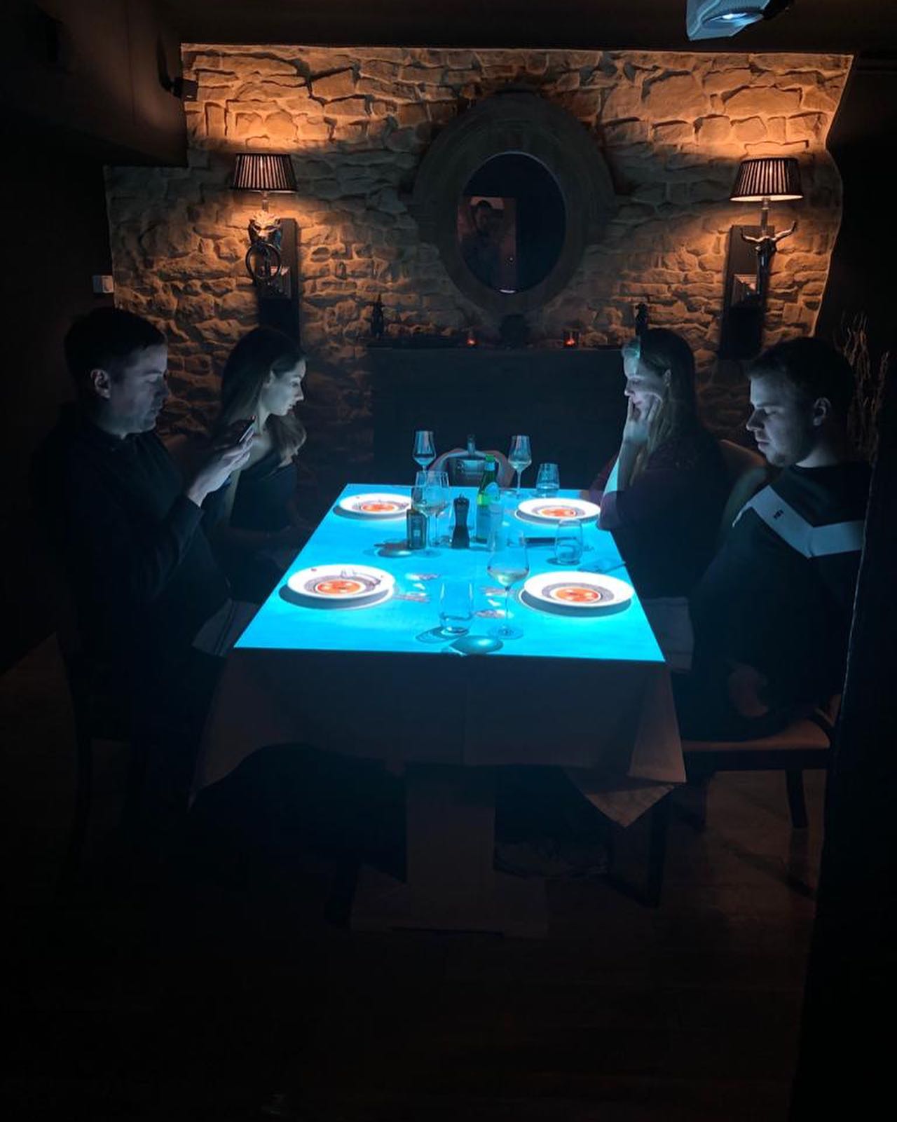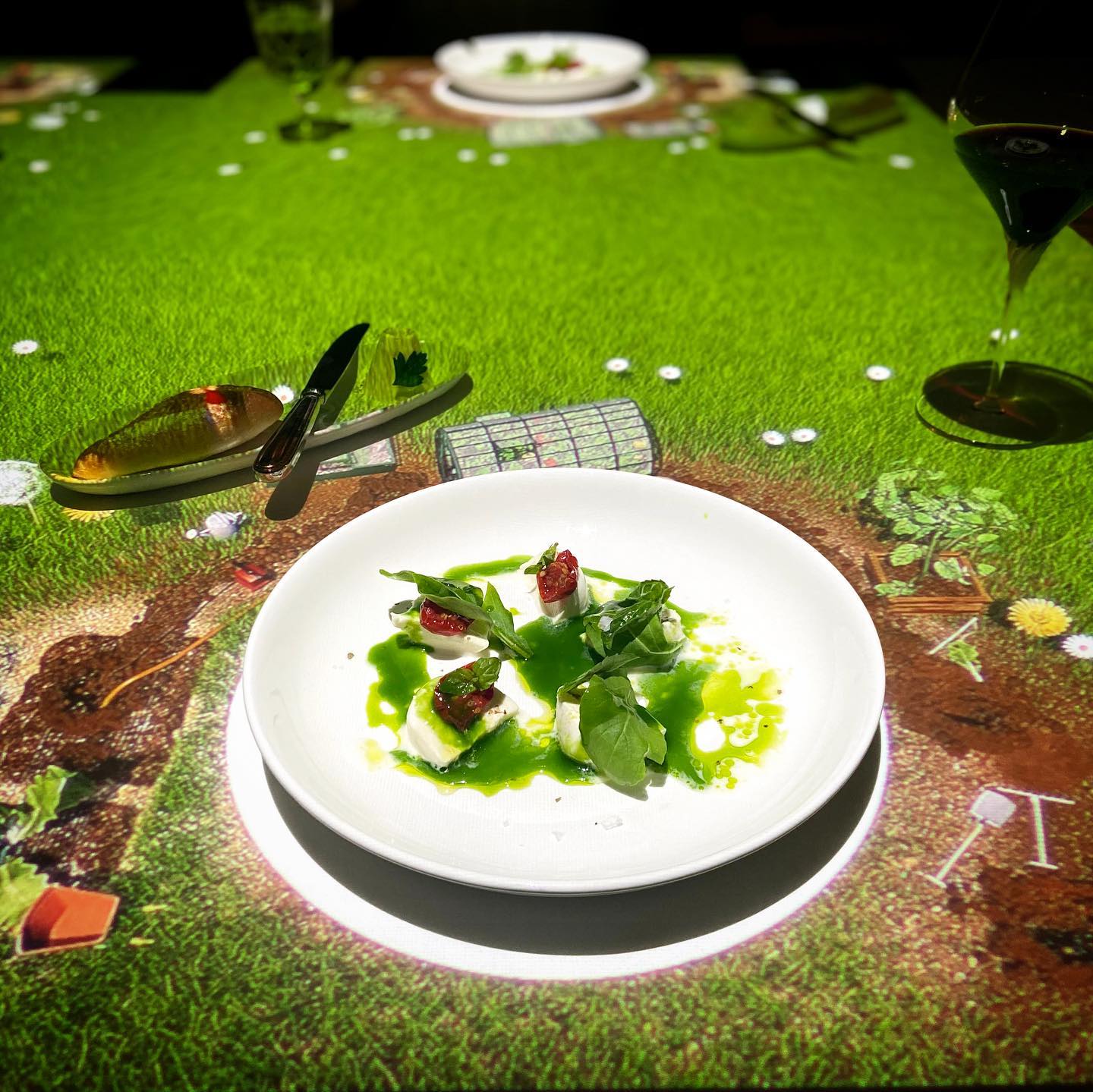 Це був шикарний обідній сервіс із 5 страв та використанням передових технологій 3D-картографії для проєктування цифрової анімації на тарілки відвідувачів та стіл.